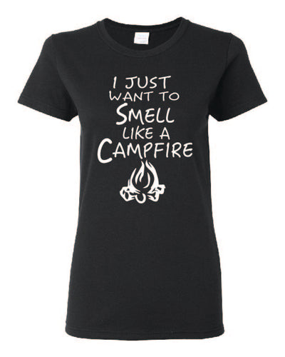 Smell Like A Campfire Ladies T-shirts White Letters