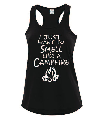 Smell Like A Campfire Ladies Tanks White Letters