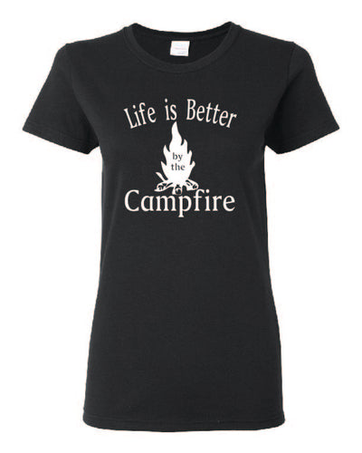 Life Is Better By The Campfire Ladies T-shirt White Letters